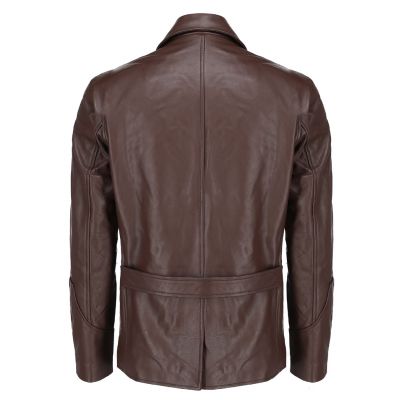 Mens Notched Collar Leather Blazer Coat